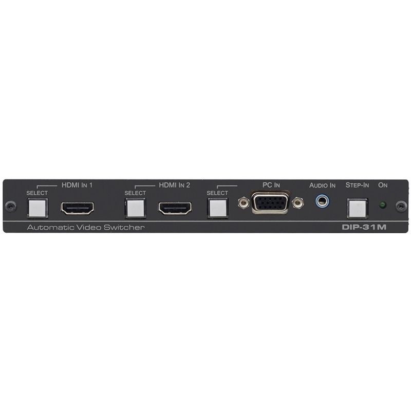 DIP-31M — передатчик сигналов HDMI, VGA, Ethernet, двунаправленного интерфейса RS-232 и небалансного стереофонического аудиосигнала по кабелю HDMI с функцией дистанционного управления коммутатором по технологии Step-In. Функция позволяет отобразить подключенный к передатчику источник через коммутатор Step-In на основном дисплее. Встроенный контроллер помещения обеспечивает управление периферийным оборудованием: светом, шторами, экраном. Поддержка протокола управления RS-232 позволяет управлять удаленным монитором или проектором.